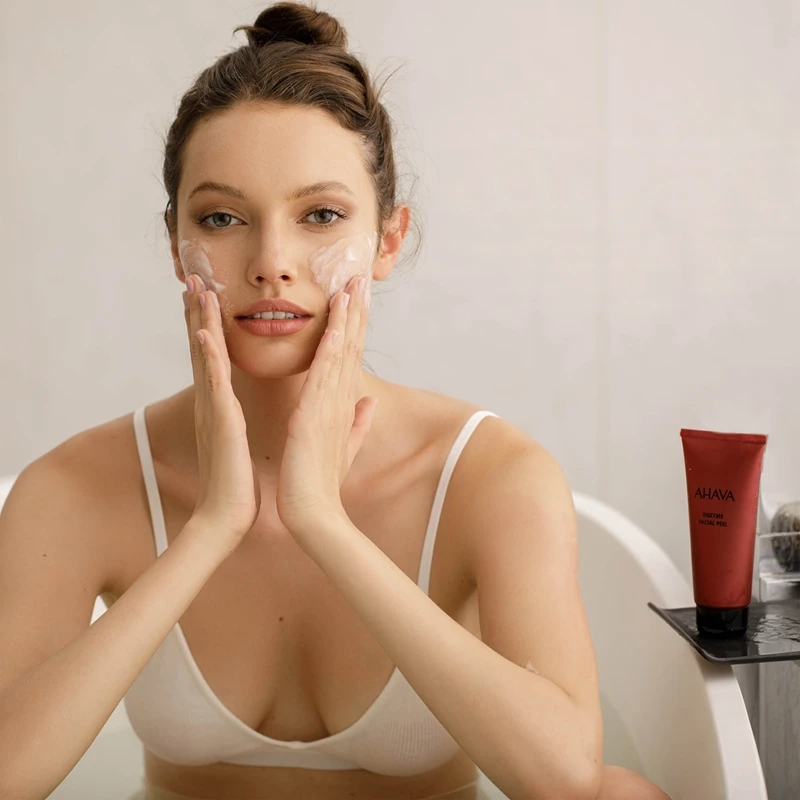 Le gel gommant AHAVA Apple of Sodom nettoie le visage en profondeur, élimine toutes les impuretés et lisse la peau.