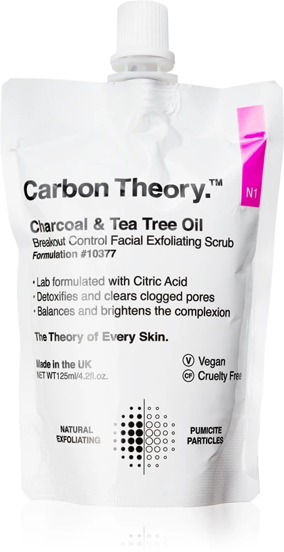 Le gel gommant Carbon Theory Charcoal & Tea Tree Oil nettoie le visage en profondeur, élimine toutes les impuretés et lisse la peau.