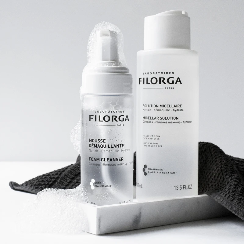 La mousse nettoyante et démaquillante à effet hydratant Filorga Cleansers démaquille parfaitement la peau et la prépare parfaitement pour les autres soins.